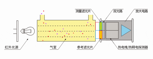 综上,在封闭室内需要实时监测二氧化碳浓度,防范室内缺氧。NDIR技术检测二氧化碳具有抗气体交叉干扰,检测精度高的优势。因其检测原理是基于气体分子在特定红外波段的吸收特性,在二氧化碳的红外吸收光谱中,选择4.26μm进行检测,气体吸收率最高,红外辐射衰减显著且水汽吸收率较低。