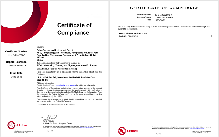 近期,欧博ABG环保尘埃粒子计数器 OPC-6303UL 顺利获得了 UL 61010-1 的测试,取得 UL 的正式认可。这不仅是对产品质量和安全性的认可,也为其在国际市场的推广给予了有力支持。