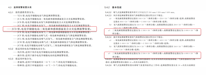 差异化气体预警:创新性的将CO₂气体纳入监测范围,并分别对液冷型、风冷型电化学储能电站设定了差异化的CO₂报警设定值。