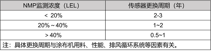 某检测仪生产厂商,根据 NMP 浓度的日常监测范围,给出催化燃烧式NMP传感器的更换建议。